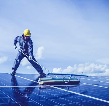 Our team consists of trained professionals who are equipped with the latest safety gear to work on rooftops and other elevated structures without risk. We use specialized, non-abrasive cleaning materials and soft brushes designed specifically for solar panels. We never use high-pressure water jets or harsh chemical detergents, as these can scratch the panel's surface, damage the anti-reflective coating, and even void your warranty.